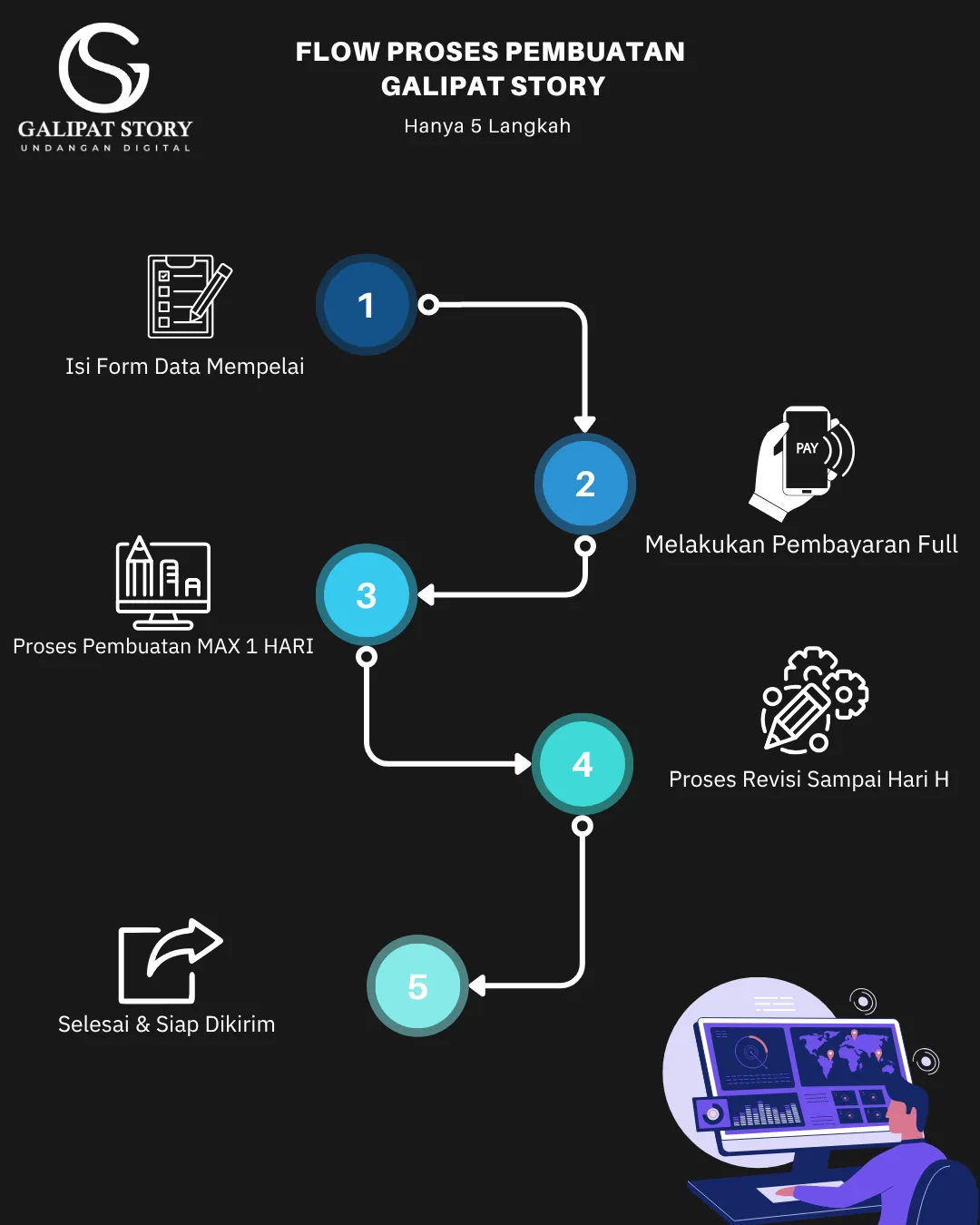 Kami siap membantu anda membagikan momen bahagia ini dengan cara yang lebih mudah dan professional. Silahkan ikuti panduan dibawah ini untuk proses pemesanan.
